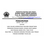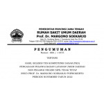 Sesuai dengan pengumuman Nomor 800 / 11757 Tentang Hasil Seleksi Administrasi Dokumen Pendaftaran Pengadaan Pegawai Badan Layanan Umum Daerah Non pegawai Negeri Sipil Tidak Tetap RSUD Prof. Dr. Margono Soekarjo Provinsi Jawa Tengah Periode Novembe...