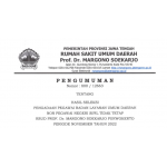 Sesuai dengan Pengumuman Nomor 800/12663 Tentang Hasil Seleksi Pengadaan Pegawai Badan Layanan Umum Daerah Non Pegawai Negeri Sipil Tidak Tetap RSUD Prof. Dr. Margono Soekarjo Purwokerto Periode November Tahun 2022. Dengan ini disampaikan daftar p...