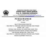 Sesuai dengan pengumuman Nomor 800 / 11875 Tentang Hasil Seleksi Tes Kompetensi Dasar (TKD) Pengadaan Pegawai Badan Layanan Umum Daerah Non Pegawai Negeri Sipil Tidak Tetap RSUD Prof. Dr. Margono Soekarjo Provinsi Jawa Tengah Periode November Tahu...