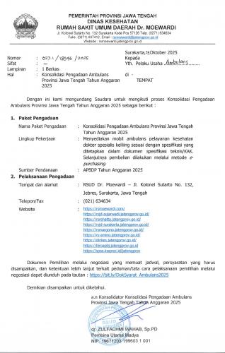 Pengumuman – Konsolidasi Pengadaan Ambulans Provinsi Jawa Tengah Tahun Anggaran 2025
