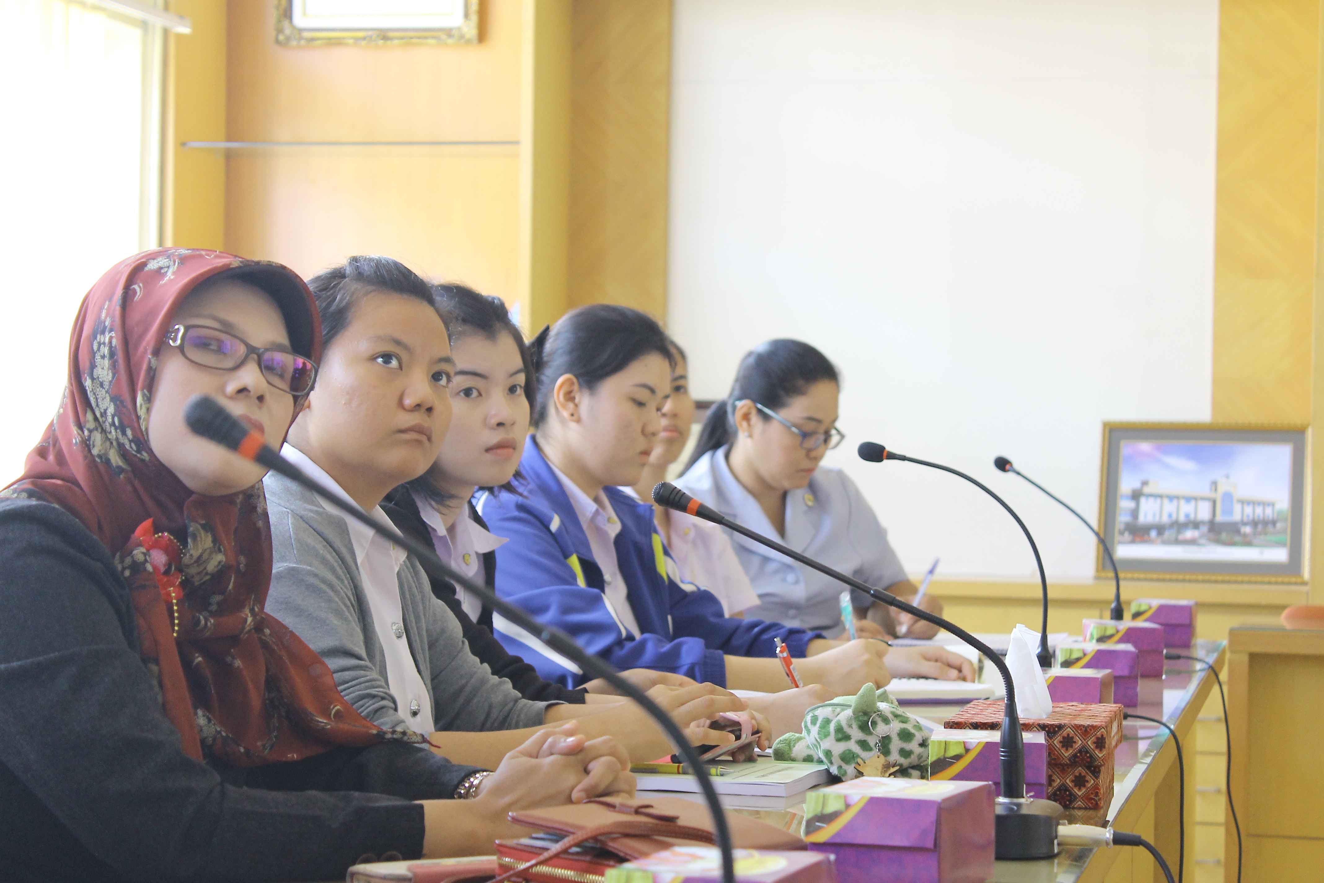 Pada kesempatan tersebut rombongan diterima oleh Kabid Pendidikan dan Penelitian Nurekta Yulistrianti, DCN.MKes, Kabid Keperawatan Supriyatin, S.Kep.Ns dan Tim Clinical Nurse Educator RSMS. Setelah penerimaan yang bersifat informal dan perkenalan masing masing anggota rombongan, mahasiswa PCN yang disertai oleh peers mereka dari SHB mendapatkan presentasi pendidikan klinik di RS Margono dan kuliah umum tentang Chronic Kidney Disease (CKD) serta Hemodialisis dimana diantara 2 negara tersebut Thailand dan Indonesia saat ini sedang mengalami permasalahan yang sama dan menjadi salah satu concern di bidang kesehatan.
