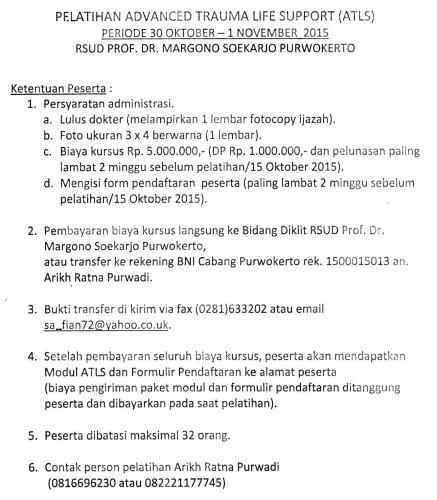 Pelatihan Advanced Trauma Life Support (ATLS) Periode 30 Oktober-1 November 2015 RSUD Prof. Dr. Margono Soekarjo Purwokerto
